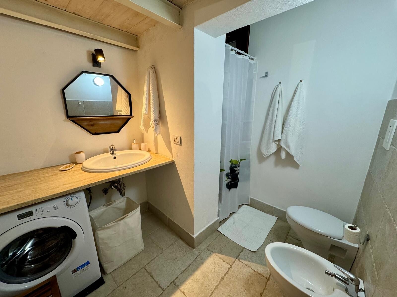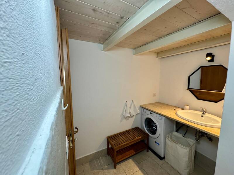 Bagno essenziale e funzionale, progettato per garantire comfort quotidiano. Dotato di tutti i servizi necessari e di un pratico angolo lavanderia, combina praticità e ordine in uno spazio compatto ma ben organizzato.